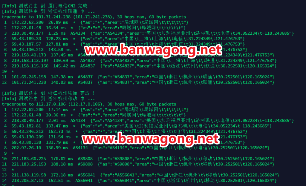 后续本站会介绍一个效果更好的回程路由测试一键脚本。