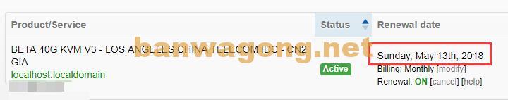 今天发现搬瓦工之前通知的 DC9 CN2 GIA 机房临时维护今天已经完成了迁移,目前是被迁移到了 DC3 CN2,也就是 QNET 机房的 CN2 路线。 之前通知是说需要 3 天到 7 天的时间来完成 GIA 机房的维护,不过我们可以看到之前承诺的补偿一个月已经兑现了: 可以看到,3 月份买的,本来应该是 4 月份就到期了,现在已经变成 5 月份才到期了,增加了一个月。 相关文章:搬瓦工 DC...